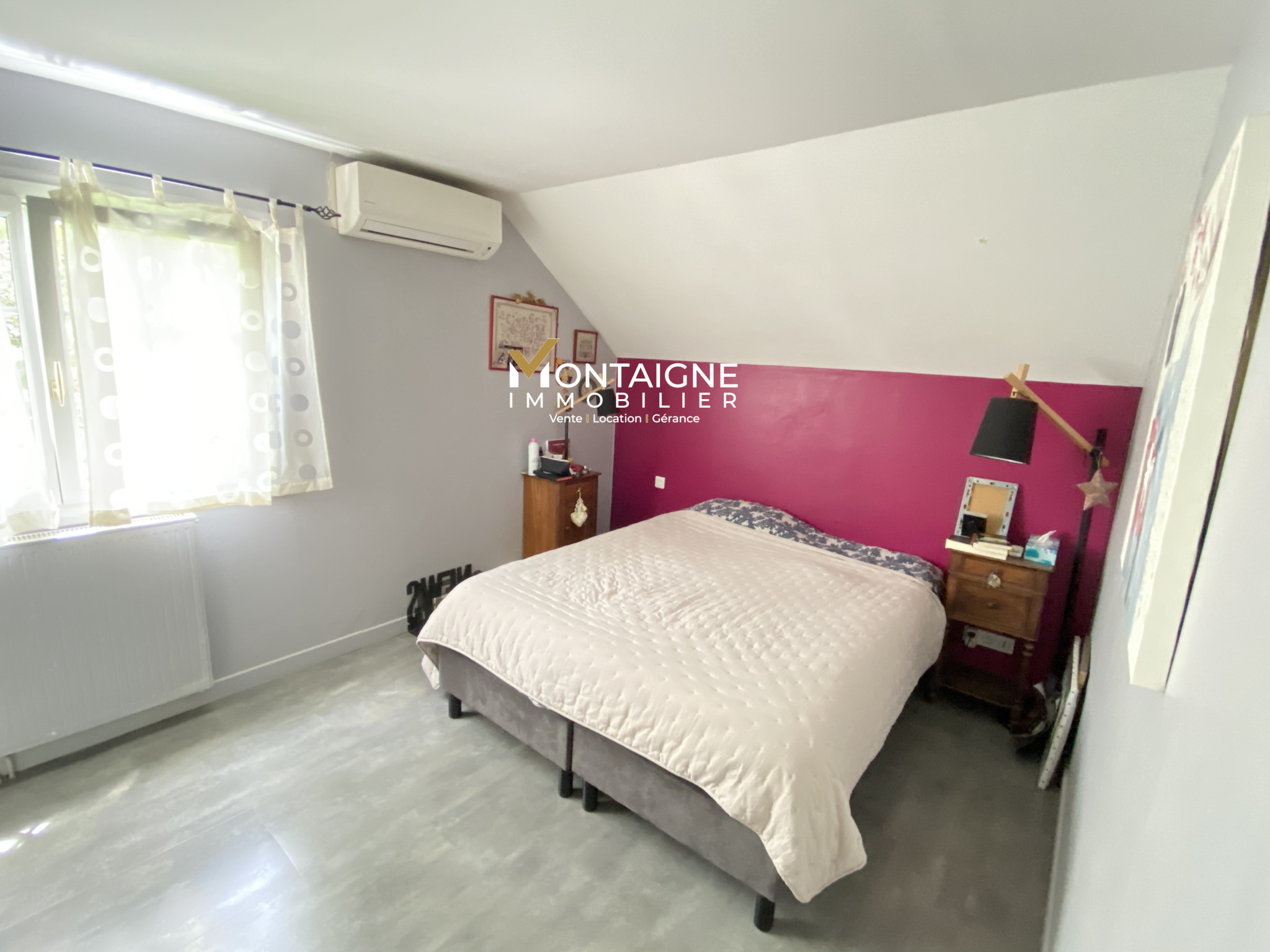 À l’étage, vous trouverez 3 chambres, dont 2 équipées de climatisation, des rangements pratiques et une salle d’eau rénovée avec WC.